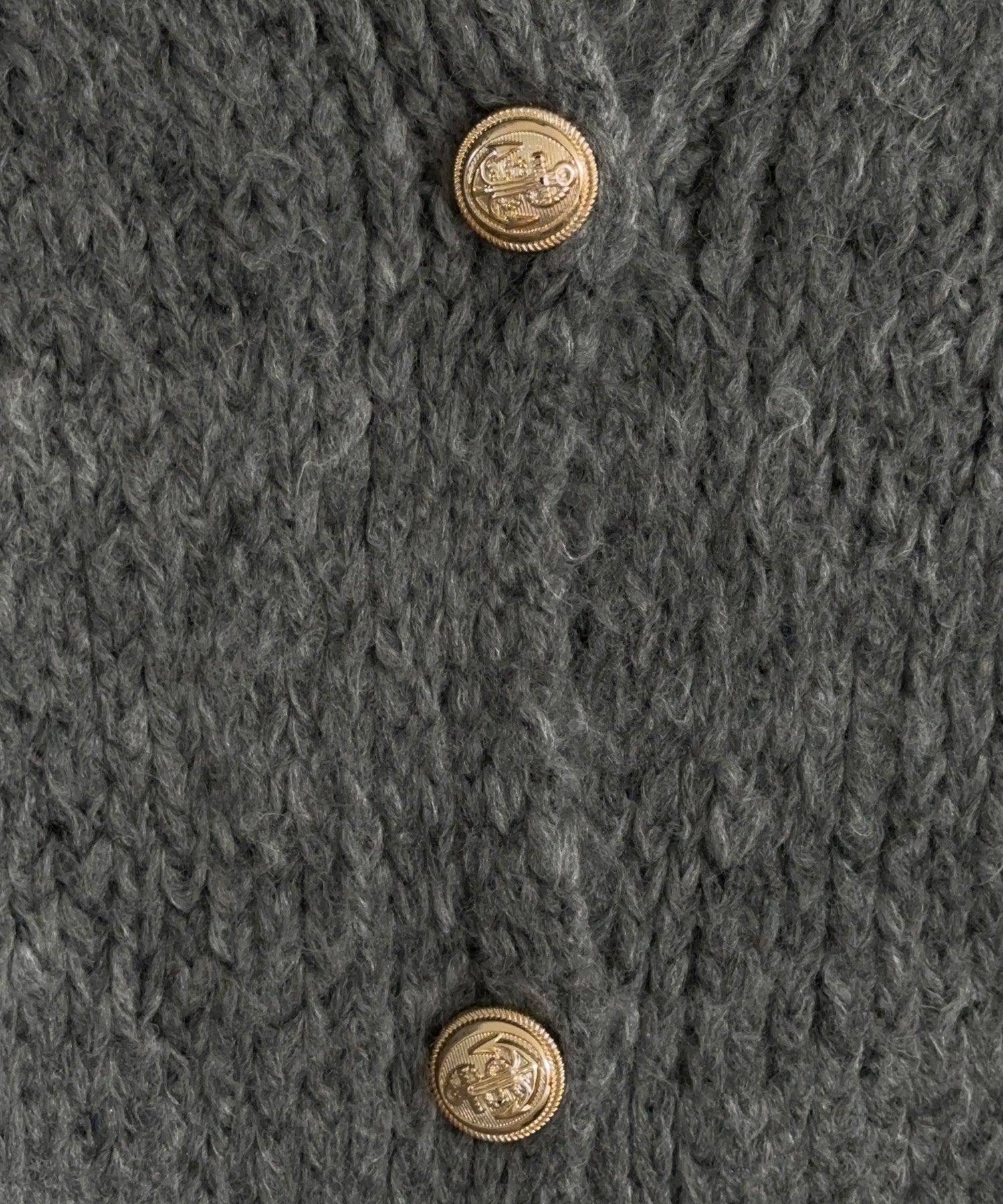 Details: Gold buttons and elastic cuffs at the wrists