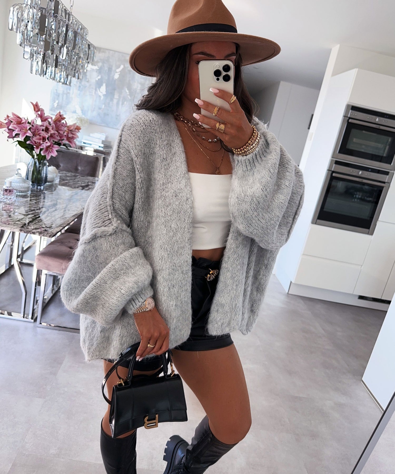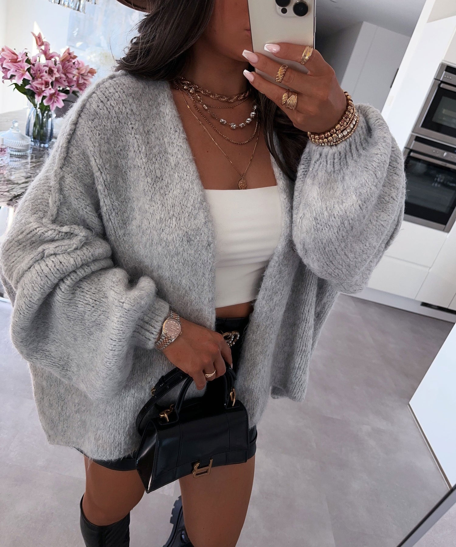 Lightweight oversized cardigan designed for effortless layering and everyday comfort. Relaxed silhouette with a breezy drape. Model is 5'5'' tall and wearing size M - UK10