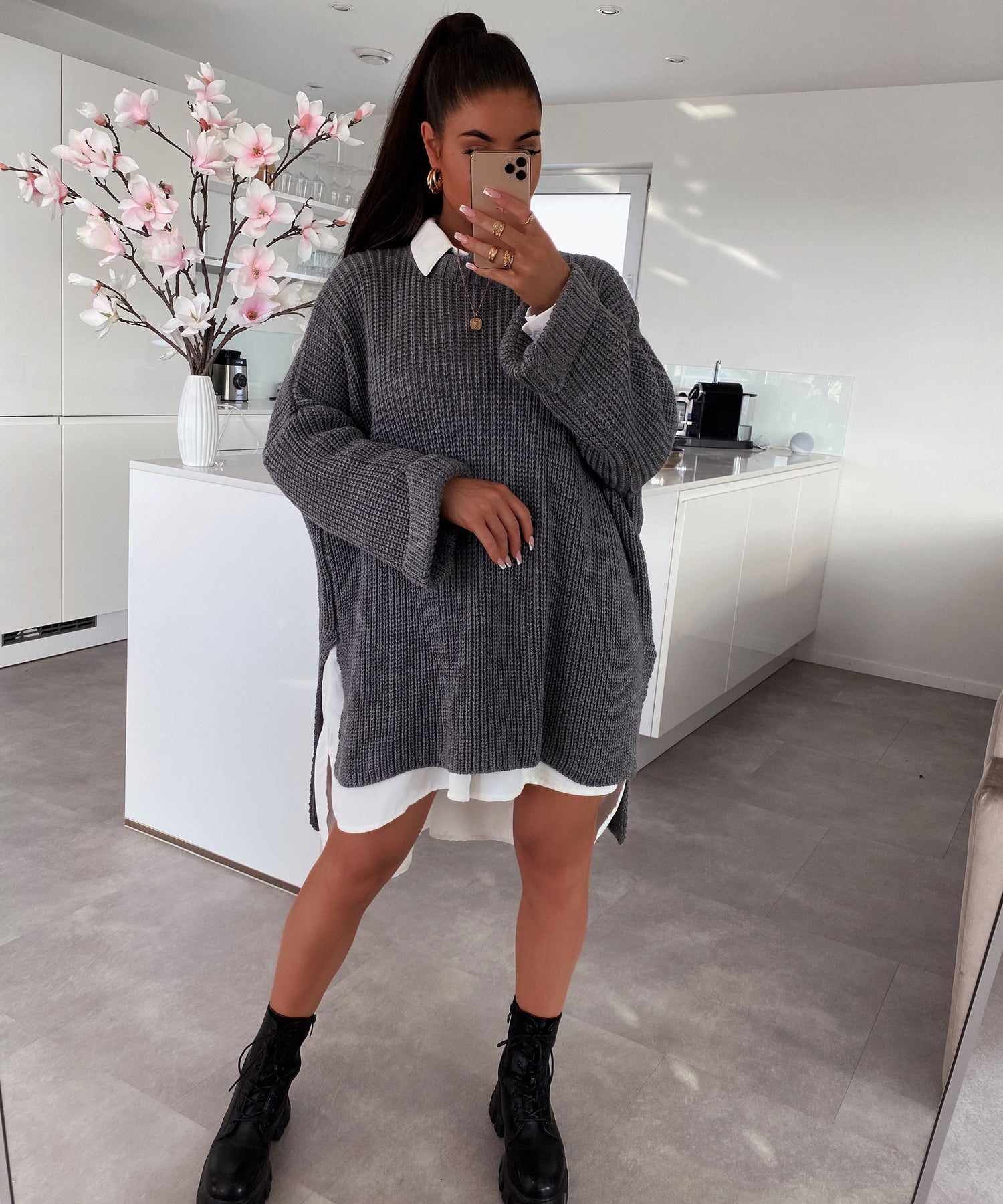 Deep grey knit with a relaxed, oversized fit