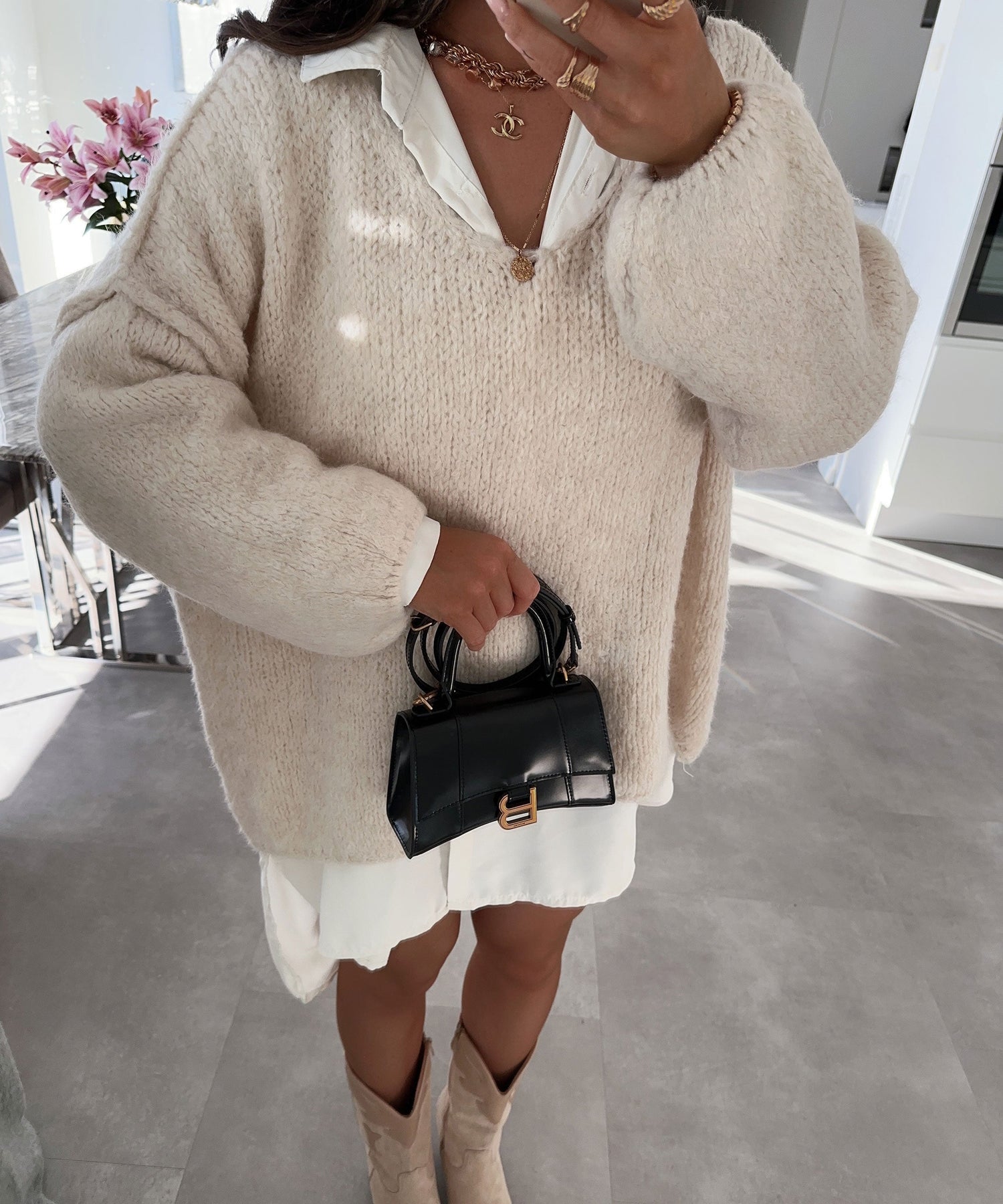Wrap yourself in effortless elegance with this cozy V-neck pullover – the perfect balance of comfort and timeless chic. A versatile knit that transitions seamlessly from day to evening — model is 5'5" and wears size M - UK10.