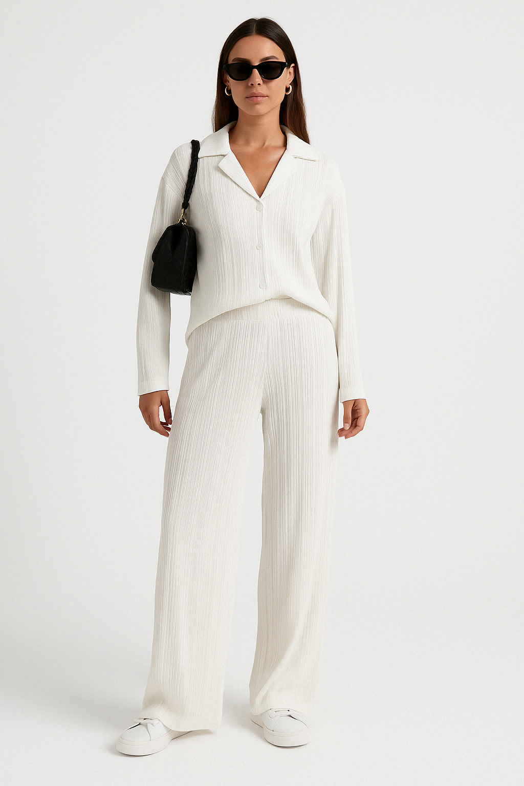 The Bella Set blends timeless design with everyday comfort. Crafted from a lightweight, subtly textured fabric, it drapes gracefully for a relaxed yet refined silhouette. Featuring a loose button-up shirt and wide-leg trousers, this set is the perfect balance between chic and laid-back. Whether you're strolling along the coast, running errands, or heading to a casual dinner, Bella is your go-to for looking effortlessly elegant—no matter the occasion.
